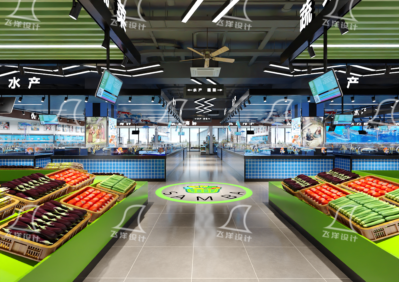 第一层:干净均匀的基础光。 这是空间的底子。目标不是亮如白昼,而是提供安全、舒适的整体亮度。低成本的做法是,规整并升级现有顶灯。可以将杂乱无章的旧式日光灯管,替换为排列整齐的LED平板灯或线条灯。选择显色指数(Ra)高于80的灯具,能让蔬菜的翠绿、水果的鲜红、肉类的色泽得到更真实、饱满的呈现,这是提升商品质感的第一步。将灯光色温统一为4000K左右的中性光,既能保持清醒明亮的氛围,又比冷白光显得更温馨、高级。