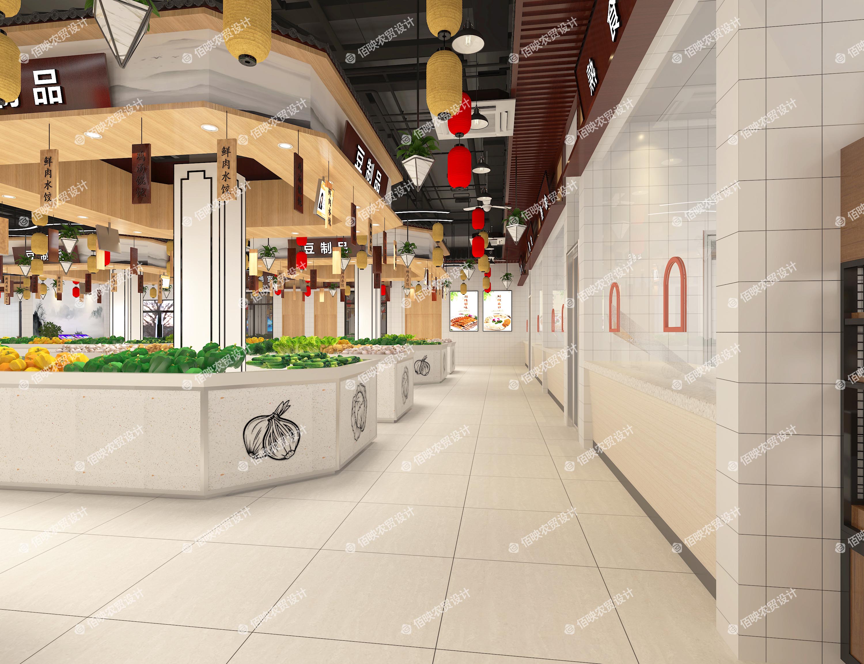在市场建筑设计过程中,外立面的设计要尽量能够保证市场良好的通风和采光,特别是在水产、海鲜等区域,通风效果一定要好,要保证市场内部空气的清新;在休息、餐饮区域,采光度尽量好一点,能够为顾客提供一个舒适的就餐和休息环境。
