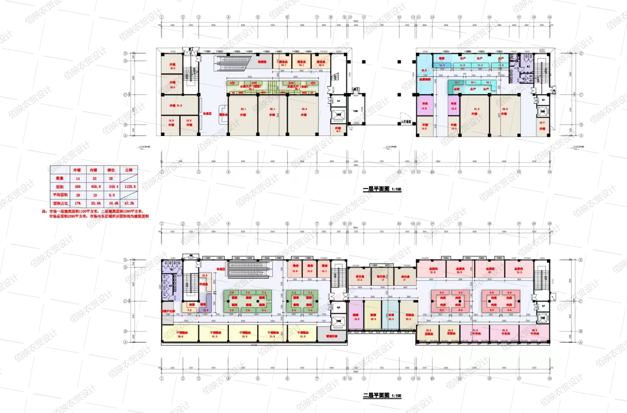 市场面积:两层共约2400㎡