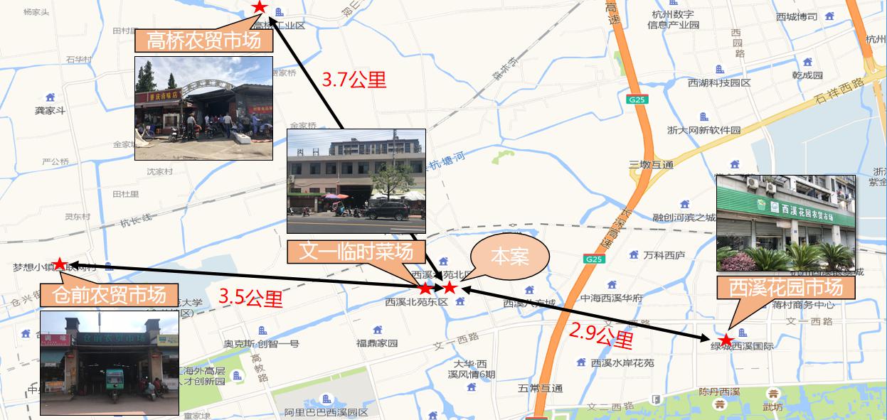 (上图是杭州某农贸市场的选址调研分析报告,从周边区域性质、主要住宅小区与商圈、同类竞争市场的多角度做出分析,服务对象为高消费水平人群,故定位为现代化农超。)