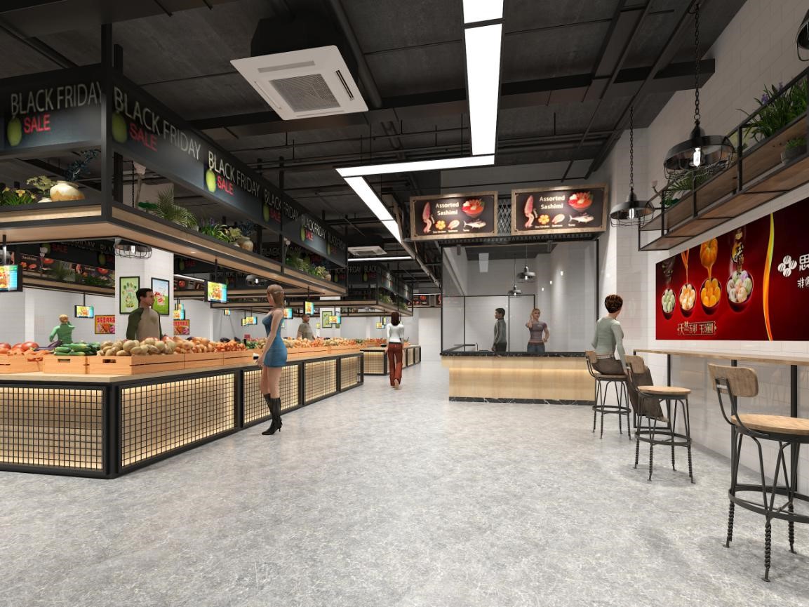 工业风的最大好处还是在于其成本相对较低,而效果整洁大方,是一款适用于小型精品农贸市场的设计风格,性价比较高。