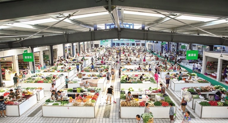 农贸市场,顾名思义是集农产品蔬菜、瓜果、禽类、肉蛋和水产生鲜及各类豆制品粮油调味品于一体的零售场所,针对市场周边区域的每个家庭提供服务,很好地解决了人们日常买菜卖肉的生活需求。